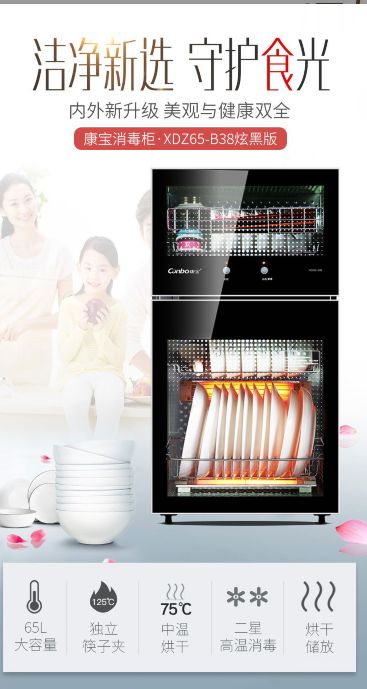 如康宝XDZ70-G19新品立式消毒柜,上层采用负离子科技杀菌,下层则是125℃的高温(开水只有100℃),可以轻松“熔杀”细菌,消毒级别属于二星,其上层采用的是负离子消毒,中温抑菌,能保证在餐具上没有异味。下层采用的是125℃智能控温,与其他消毒柜不同,柜体带有聚能消毒技术,具备聚能隔热层和聚能防护层,可自我调节,防止餐具受损。三层收纳结构,容量高达70L,上层可以存放婴儿使用的碗筷、奶瓶等,具备独立的筷子架,中下层可放置消毒餐盘、碗,满足一家人的使用需要。值得一提的是,本次京东双11大促,仅需499元,活动详情见康宝京东自营旗舰店。
