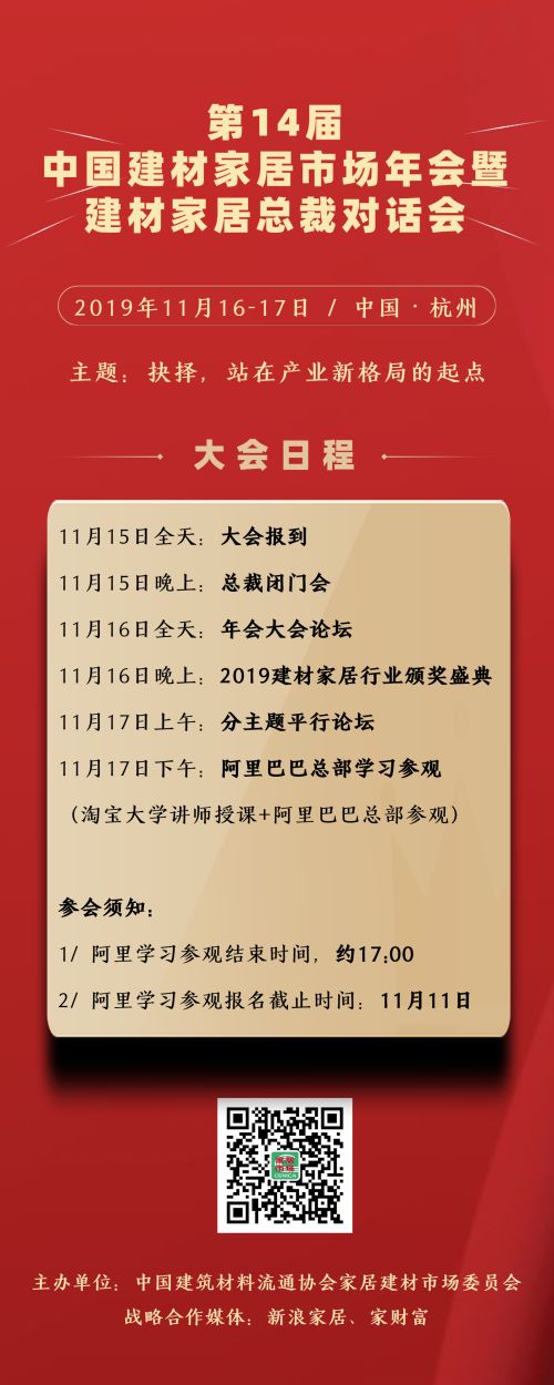 在「第 14 届中国建材家居市场年会暨建材家居总裁对话会」(11月16-17日,杭州,主题『抉择,站在产业新格局的起点』)召开之际,我们征集了一部分行业优质企业对年会的寄语,以及对建材家居市场形势的判断与看法,分享给大家。