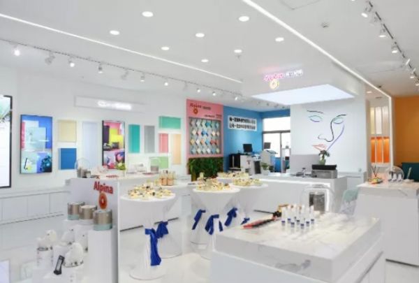 10点18分,在多位嘉宾代表的见证下,阿尔贝娜“护墙如护肤”体验店正式揭幕。