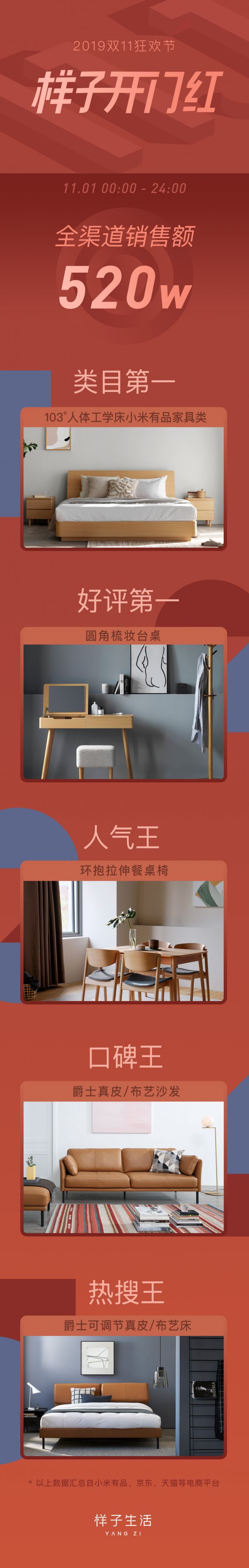 近一年来,专注年轻人家居市场的样子生活,无论从产品数量、品类扩张、渠道拓展、平台运营还是品牌营销方面,都取得了飞跃式的进步,消费者在样子生活可以做到全屋家具一站式购买。同时,国际化设计团队的打造,加上供应链强大的开发和品控能力,引领中国年轻人家居审美的样子生活系列产品让人惊喜不断,此次开门红战绩较去年同期增长近11倍,消费者对样子生活产品的热爱,更是将网红爆款103°人体工学床推到了小米有品“家具品类第一”的位置上。