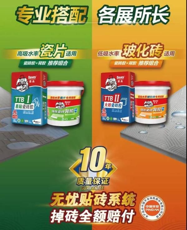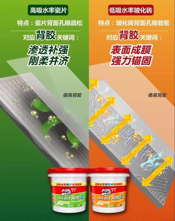不同吸水率瓷砖,应选用匹配的德高强效瓷砖背胶,专业搭配,各展所长!