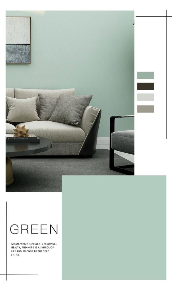 顾名思义,就是牛油果的颜色,颜色比纯正的绿色要更加的浅,色调更加柔和自然,比较接近森林色系,比抹茶色以及薄荷色都要暗。