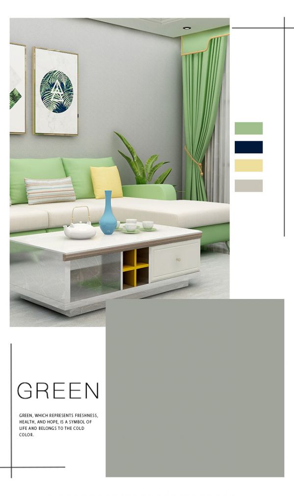 高级灰低调奢华有内涵,绿色活力充沛有生机。当冷静灰搭配活力绿,明丽而优雅的色调传递着清透感与高雅范儿。