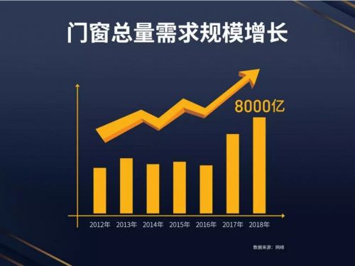 正因如此,近年来,系统门窗市场需求量逐渐增大,市场需求年增长率超过50%,正处于快速上升通道,年销售复合增长率超过40%,门窗总量需求规模超过8000亿。可见2019年系统门窗市场的风口已愈吹愈烈,巨大的市场红利也随之而来。