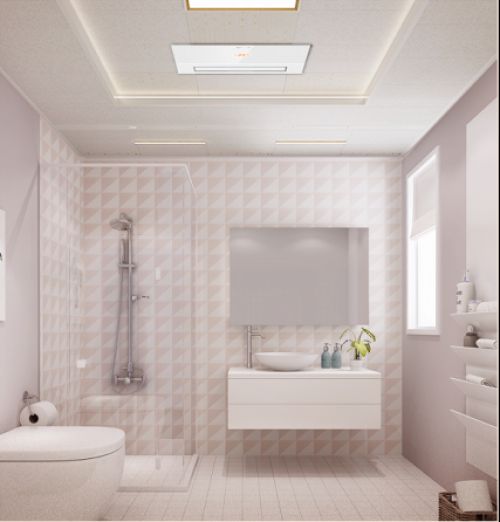 在实际使用中,哪个功能区需要加热,就开哪个开关。一般会在干区和湿区分别装一个出风口,洗漱上厕所沐浴,实现不同生活场景下的精准升温。除了保证3200W双出风口,疾速加热,2分钟升温10度外,还有很多人性化设计。比如沐浴模式,可以自动感知不同的室内温度,20°以下,湿区强取暖,20-30度,湿区弱取暖,30以上湿区调整为吹风模式。实现了浴室的恒温控制,特别适合家里老人小孩使用。还有智能换气模式,卫生间每5小时自动换气,全天候保持卫生间空气流通。
