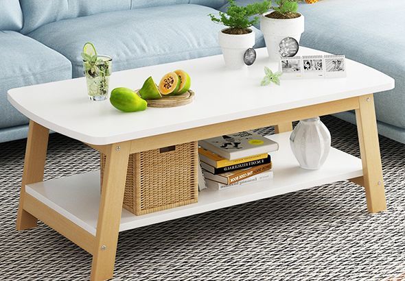 这款北欧风茶几拥有简单柔和的线条,以白色和木色为主色,时尚美观,百搭各种家居风格。除了桌面之外,它还设置了一个储物格,让存储空间更大,让书本、遥控器等等杂物都有了容身之地。