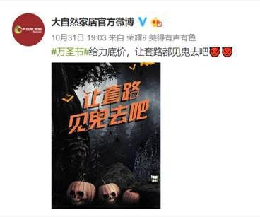 在10月31日万圣之夜,大自然家居官方微博晒出万圣节海报,并扬言“让套路见鬼去吧”,颇耐人寻味。俗话说,自古深情留不住,唯有套路得人心,可面对越来越复杂的双十一规则,网友直呼“没点奥数功底都不配过双十一”。 套路当道,大自然家居“让套路见鬼去吧”这波操作,会如何带网友“愿望11实现”?