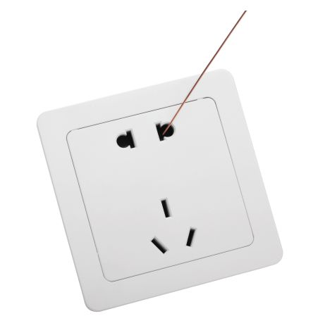 时刻的安全意识,源于对家人的关爱,具备童锁设计的插座面板,插孔位设置隔源安全保护门,预防孩子不慎单指插入,百分百阻隔电流。