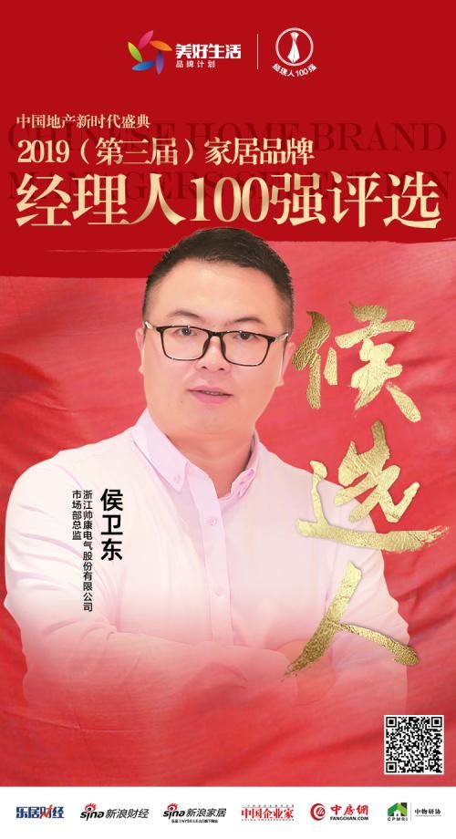 新浪家居讯 由乐居财经、新浪财经、新浪家居、中国企业家、中房网联合主办,中国房地产业协会、中国物业管理协会、全国工商联家具装饰业商会共同指导的“家国同梦——2019年(第三届)中国家居经理人评选”活动正式启动。浙江帅康电气股份有限公司市场部总监侯卫东获媒体提名,进入“2019中国家居品牌经理人100强”评选。