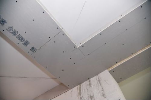 L型整板切割工艺,转角处石膏板罩面必须采用L型整体裁切,可有效避免后期吊顶转角处开裂。