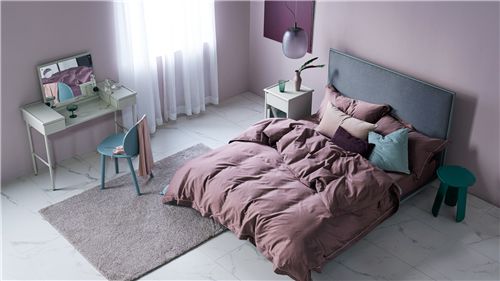 摒弃市场一般大软包床头的厚重设计,以规整统一的海绵软包覆盖的超高床头,轻盈耸立,如挂在空间的宽幅油画,无需多余装饰已自成一格。