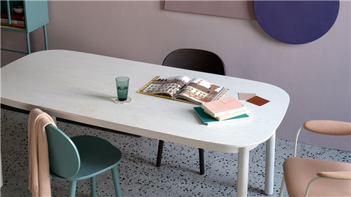 弧度设计呈现桌沿、望板及桌腿的细腻呼应,使用感受舒适亲切。三种大小尺寸,多场景适用,既可满足家人日常就餐围坐,又可用作宽敞办公。
