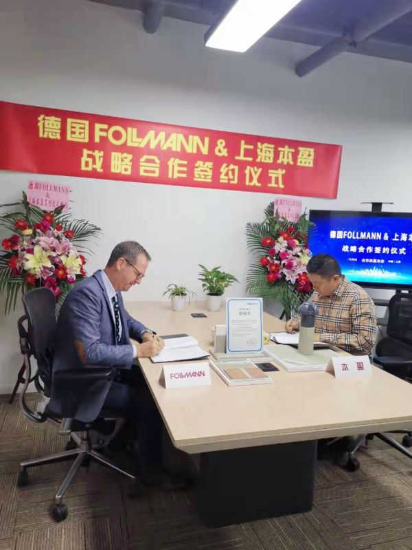 2019年11月5日,上海本盈新材料科技有限公司与德国福漫集团正式签署战略合作协议,德国福漫集团亚太区总经理Kammer Roger、大中华区总经理Eric Liu、销售总监Kevin Hu以及上海本盈新材料科技有限公司总经理顾宏慧先生、设计部经理蒋浩先生、工程总监周光立先生共同出席此次签约仪式,根据合作协议内容,上海本盈正式成为德国福漫集团南京地区总经销商以及上海特约经销商,将德国最顶级防水材料引进中国。