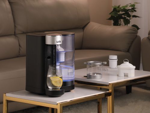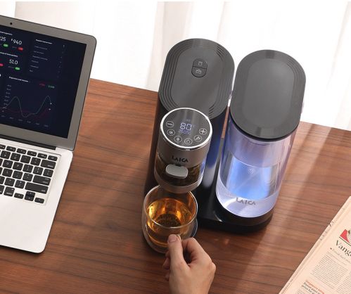 当看到具体产品时,疑惑也瞬间解开。原来净水泡茶一体机是莱卡出产的新品,难怪速度会如此之快,因为莱卡历来有这个传统。从直饮净水壶到净饮机,再到如今的净水泡茶一体机,莱卡的创新和研发一直都是走在前列的,其独创的双芯过滤系统至今无人望其项背。