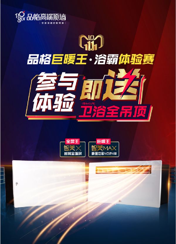 【卢总】电器为品格主推产品,今年我们主推智美X”、“智美MAX高端浴室空调。今年双十一,我们的活动主题是 《11.11品格”巨暖王“浴霸体验赛 —— 参与体验即送4平米扣板》。活动期间凡进入品格门店进行“智美X”、“智美MAX”卫浴电器产品体验的客户,均可享受品格公司直接赠送的四平米免费扣板(仅限卫浴空间使用)。