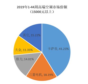 此外,在高端家电市场上头部品牌的集中度越来越高。以价格在15000元以上的高端空调市场为例,据中怡康统计,截至11月3日,卡萨帝累计份额41.23%,三菱电机18.19%,格力14.01%,大金11.35%。可以看出,如今中国消费者对国产高端家电产品越发认可。