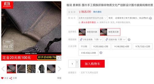 2019京东11.11全球好物节渐入高潮,各大品牌推出首发新品、优惠爆品,搭配多重福利活动,给消费者带来一场盛大的购物狂欢。而随着国潮文化崛起,文创产品备受消费者追捧,非遗品牌也成功搭上电商这趟快车。继山东专区上线京东非遗频道之后,京东11.11期间,京东非遗频道再添重彩,湘西非遗正式上线,其相关产品在其线上承接店铺——薪火非遗专营店出售。11月1日,湘西非遗主打品牌梭说首发推出素系列围巾和侗锦领带等新品,此外,花瑶花和书院九号两个品牌也借京东11.11全球好物节的热度陆续上线,推出新品好物。