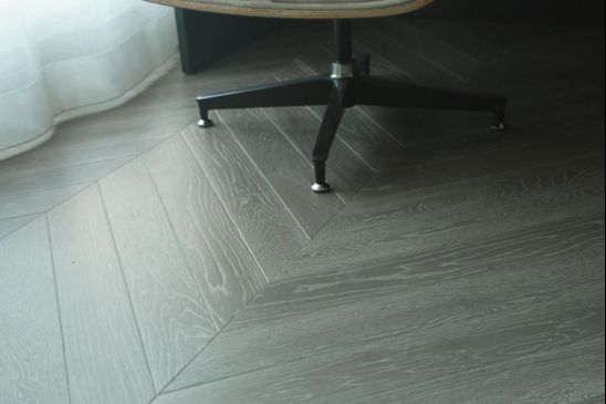 而在《重新出发的家》中,委托人120㎡的房子由于色彩太过繁杂,导致风格凌乱。设计师梁穗明则采用大面积的高品质主材为“画布”,以协调的颜色过渡为“笔触”,绘制弥散整个空间的高级质感。在黑白灰为主色调的空间布景下,梁穗明还为地面铺设了与之相互呼应的灰色系鱼骨拼天格地暖实木地板,温润的材质与冷峻的色彩进行了自然糅合,由此奠定了整个案例的高级灰家装风格。