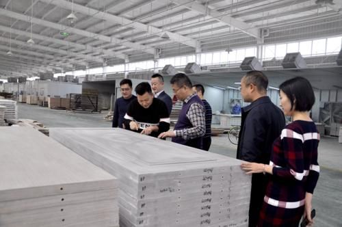 11月6日下午,蓝光材料设备集团总裁詹学军、副总裁廖万伟、信息副总经理马飞、品牌经理孙丹一行4人莅临湖北千川门窗有限公司访问交流,湖北公司总经理骆柏韬率公司管理团队相关人员热情接待,双方进行了深入友好交流。 在骆柏韬总经理等人的陪同下,蓝光集团考察团一行饶有兴致的参观了生产车间,详细考察了生产车间各个生产环节。一行人一边走一边看,通过切身体验,感受千川木门先进的制造工艺和千川工人严谨细致的工匠精神。对公司原材料选择和处理、生产工艺、品质管控、技术要求有了更深的了解。参观过程中,大家对千川的生产规模和产品质量表示了高度认可和充分肯定。参观结束后,詹学军总裁表示,对于蓝光与千川的合作更加有信心了!