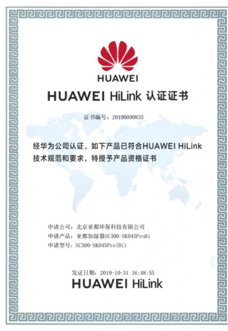 亚都加湿器通过华为HiLink认证,正式融入华为生态圈