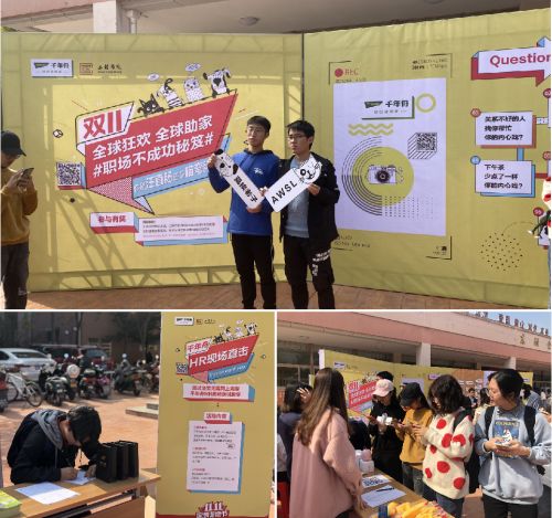 面对学子的难题,11月8日千年舟走进了浙江农林大学,不仅准备了有趣好玩的线上测试H5,更现场实时模拟面试,为学生提供正确职场应对姿势。