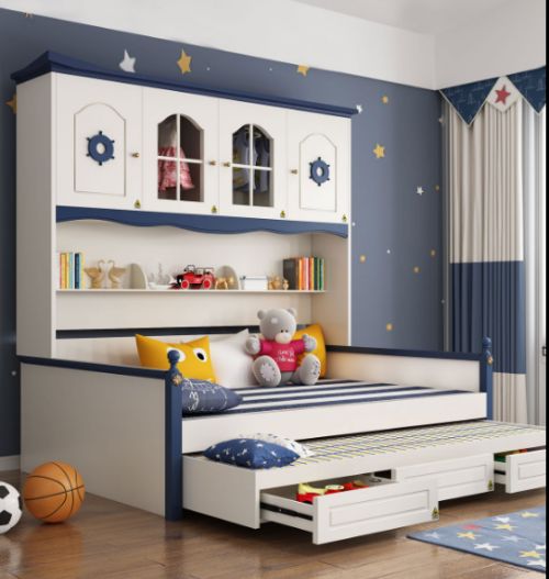 象牙白与深蓝色的组合是地中海风格的经典配色,更是白色沙滩与碧海蓝天的光景,多兰纳尔儿童套房以象牙白为底色,在床头床脚等床面设计、衣柜柜门、家居装饰品等方面加以深蓝色航海风点缀,将自然清新的效果展示的淋漓尽致,让孩子们仿佛沐浴在海边的阳光中。而熟褐色的点缀元素则可以选择象牙白或浅蓝色底色,整体效果多了几分稳重,就像穿行在北非一望无际的红褐沙漠中,是性格稳重小朋友的“心头爱”。