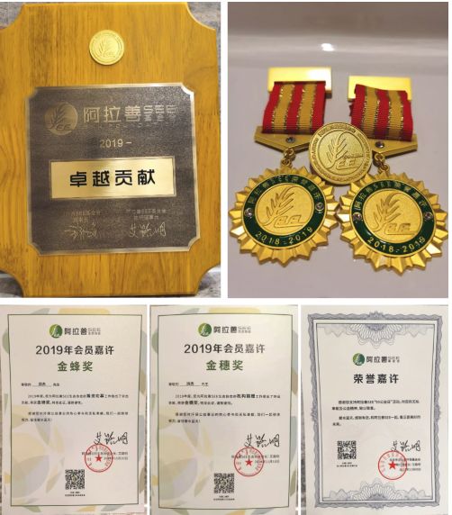 2019阿拉善SEE生态协会十五周年公益之夜上,为表彰三棵树在公益行动中做出的杰出贡献,阿拉善SEE生态协会和基金会为三棵树颁发卓越贡献奖、“99公益日”荣誉嘉许;三棵树董事长兼总裁洪杰先生荣获金穗奖和金蜂奖,以感谢三棵树对阿拉善SEE的“一亿棵梭梭”项目的支持,以及在守护天蓝、地绿、水清的生态公益上承担起的企业社会责任。