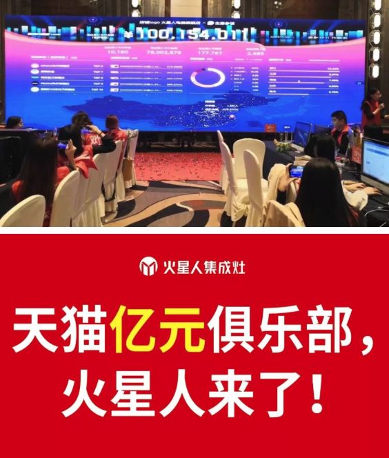 印着“双十一,一天2亿”的红色马甲铺成美丽的“幕布”,响亮轻快地键盘声汇成嘹亮而高昂“战歌”,大银幕上跳跃式上涨的数字展现着华美的“舞姿”,在双十一这一天,火星人集成灶演绎了一场“销售传奇” — 实现单日单店“破亿”,正式加入“天猫亿元俱乐部”!