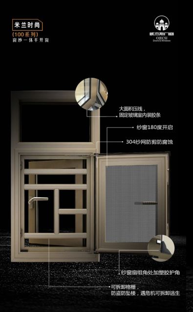 传承欧洲门窗技术精髓的高端铝合金门窗厂家欧杰斯于近日火热推出米兰时尚100系列窗纱一体平开窗,惊艳业界。该款平开窗各项性能表现出色,品质定位在中高端,但价格相对适中,一经面市便获市场一片赞誉。