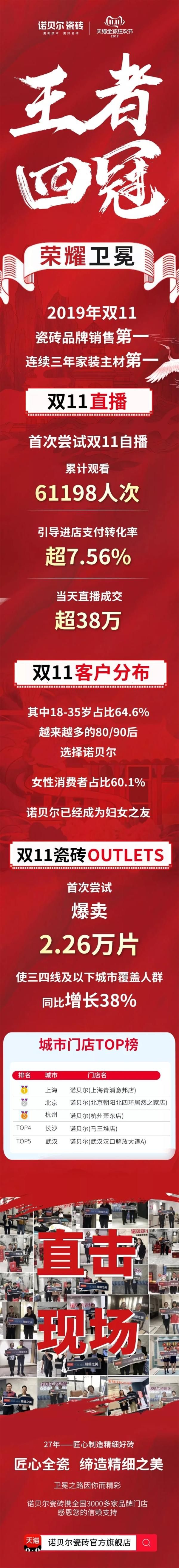 双11告捷,诺贝尔瓷砖斩获天猫家装主材类目第一!