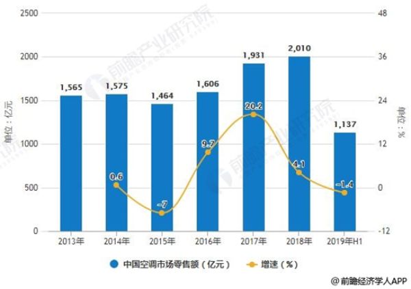 2019上半年房地产增速放缓抑制了2019年空调新增需求;二是城市市场进入更新换代时期,需求释放慢。2019上半年空调市场量增额降。据奥维云网(AVC)推总数据显示,2019年上半年,国内家用空调零售额1137亿元,同比下降1.4%;零售量3370万台,同比微增1.5%。