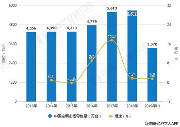 2019上半年房地产增速放缓抑制了2019年空调新增需求;城市市场进入更新换代时期,需求释放慢;企业、卖场的渠道下沉有效释放了农村市场需求;2019上半年企业大促频繁,刺激市场需求。