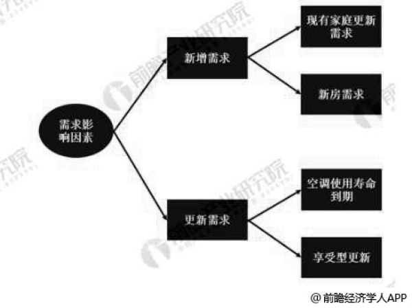 中国家用空调需求主要来自于两方面。一方面是新增需求,主要包括现有家庭新增需求与新房需求;另一方面是更新需求,主要包括空调使用寿命到期更换和享受型更新。