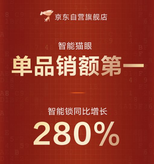 智能锁领域竞争激烈,萤石智能锁表现出彩,凭借着过硬的实力赢得了消费者的信任,入围双11京东、天猫智能门锁TOP10 品牌前十名,萤石智能锁京东平台销售额同比增长280%。
