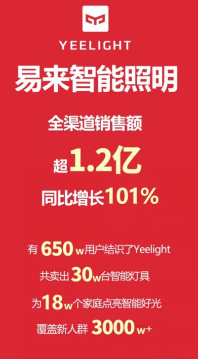 Yeelight易来智能照明引爆双十一,销售额超1.2亿