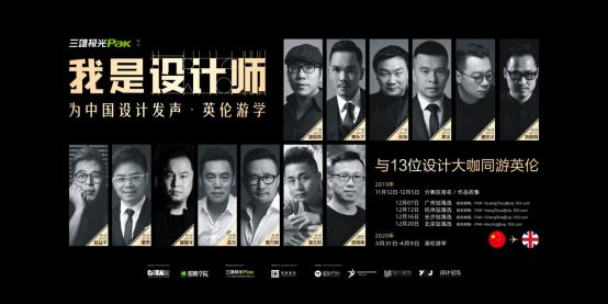 “我是设计师 为中国设计发声·英伦游学”最终获奖者将会与谢英凯、黄永才、张灿、曾建龙、唐忠汉、朱晓鸣、赵益平、覃思、黄全、孟也、陈方晓、吴文粒、邓海南13位知名设计师一同前往学术氛围浓厚的英国,进行深度游学。