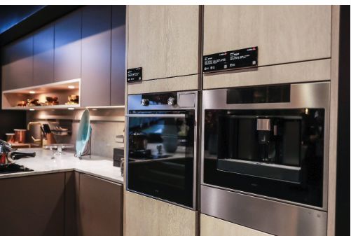 展馆内ASKO旗下奢品家电组合如洗衣房电器、元素系列烤箱、蒸烤一体机;工匠系列咖啡机等等产品与KIC家居产品融为一体,现场询问者络绎不绝。其中洗衣房四件套最为吸睛。这套组合由滚筒洗衣机、滚筒干衣机、护理抽屉、干衣柜组成。源自北欧斯堪的纳维亚设计,硬朗简约的设计,是典型的北欧斯堪的纳维亚风格,与高端住宅装修风格相得益彰。更难得的是,四件设备组合占地仅0.72平方米。