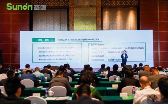 目前,圣奥正在通过智能制造的赋能,推动健康办公,实现家具制造业的高质量发展。浙商发展研究院副院长郑明治先生针对新发展理念与民营企业高质量发展进行主题分享。作为知名的民营经济专家,郑会长认为:“经济高质量发展归根究底需要通过企业高质量发展予以实现,在‘创新、协调、绿色、开放、共享’新发展理念的指引下,企业的战略定位、技术创新、产品服务质量、人才队伍等各方面升级,才能够推动企业的高质量发展。”