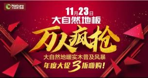 虽然“双十一”已结束,但大自然地板“万人疯抢”活动仍在全国各大城市火热进行中,年度爆款3折嗨购,不妨到大自然地板专卖店亲自体验地暖实木地板的“黑科技”技术!