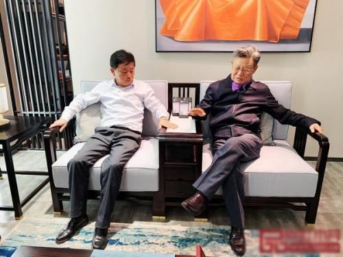 联合国前副秘书长沙祖康(右)体验新中式品牌檀一系列产品舒适度,与雅晟红木董事长冯日成(左)亲切交谈