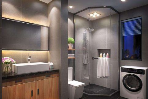 17、淋浴外还是要做隔断。不能图省事拉一个浴帘了事,实际很不方便,水流满地。