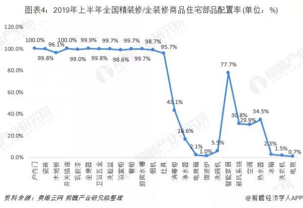 精装房的配套部品种类在扩大据奥维云网的数据,2019年上半年,全国共有574家开发商、开盘1448个精装修/全装修商品住宅项目,开发商及项目增速分别是42%、28%。