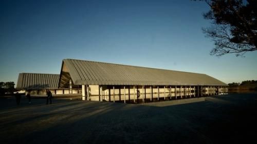 整个设计的虽然表面看起来像厂房一样,但确实延续着日本文化中谦虚内敛的精神本质。日本古建的屋顶和立柱等,都是用现代的材料来延续古建筑的美感。