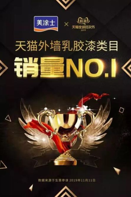 2019天猫双11落下帷幕,当日成交2684亿,再次创新高!在家居建材领域,美涂士获得外墙乳胶漆销量NO.1成绩。