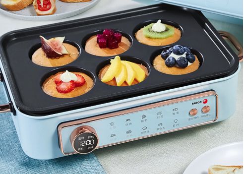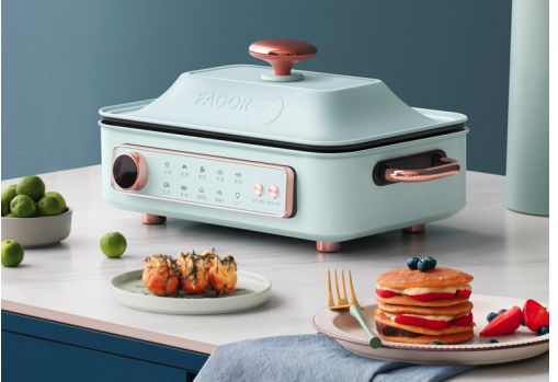 市场上没有一款料理锅有预约功能,而法格却有12H的预约功能,非常适合方便实用。这款料理锅配有五款多功能烤盘和一个蒸格,每一款烤盘都能做出多种花样的美食,实用性极强,并且纳米涂层的盘子不沾锅不掉漆,很好清洗。