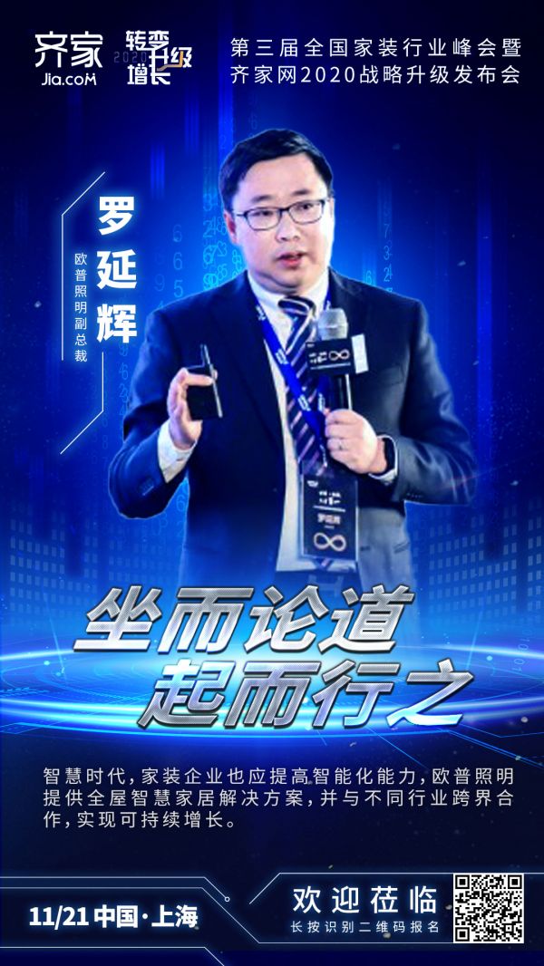 欧普照明副总裁罗延辉确认出席齐家网第三届全国家装行业峰会