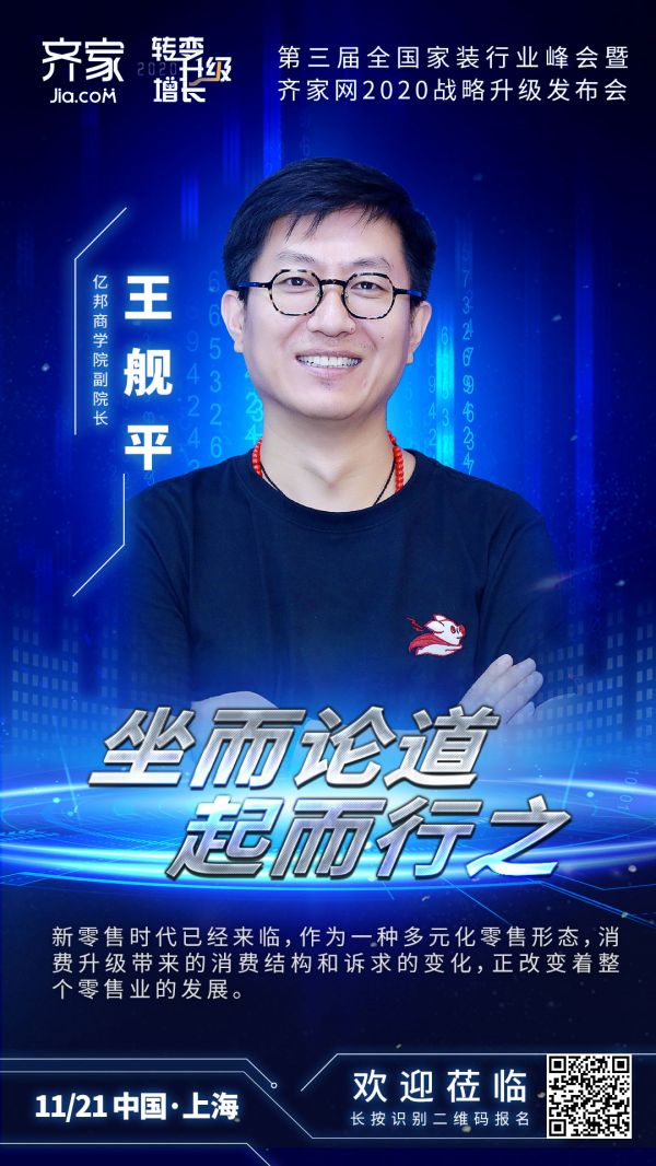 目前,亿邦商学院副院长王舰平确认出席“第三届全国家装行业峰会暨齐家网2020战略升级发布会”,届时将通过圆桌讨论的方式,结合亿邦商学院在各领域的研究和认知优势,分享对家装产业的真知灼见。