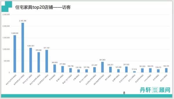 而从TOP20的流量分布来看,顾家家居可谓一枝独秀,分析认为,这与其投资双十一晚会有很大关系,通过晚会的各项活动,顾家开通了许多流量入口,进而获取了大量流量。