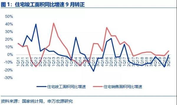 19Q3起竣工及交房数据改善。2017年下半年至今,地产销售数据与竣工数据持续背离(销售增速高于竣工增速),2019Q3起竣工数据及交房情况改善:9月实现单月竣工面积同比正增长1.1%。