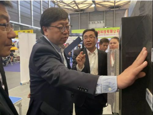 国家建筑幕墙门窗质量监督检验中心常务副主任、全国建筑幕墙门窗标准化技术委员会秘书长王洪涛先生亲临现场米兰之窗安装演示现场,米兰之窗研发总监潘福向其介绍被动式安装工艺。